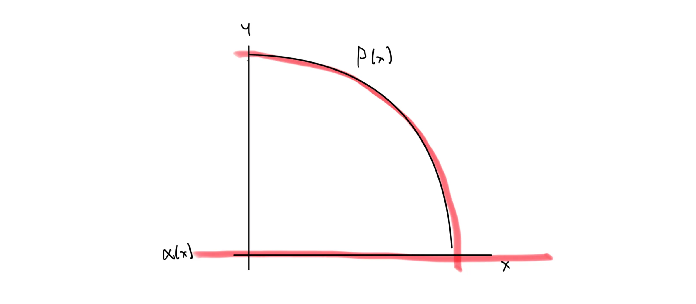 x-Achse, für welche das Integral betrachtet wird, in unserem Fall also [ 0 , 1 ] [0, 1] [ 0 , 1 ] .